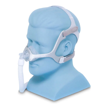 Nunca perdendo o fato de que o conforto da máscara promove uma terapia bem sucedida, a máscara traz um design elegante, leve, com contato facial mínimo e é a primeira em oferecer opções diferentes materiais na estrutura, avançando para um novo nível de escolha individual.