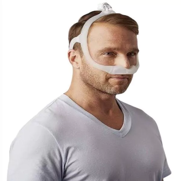 A máscara Nasal DreamWear Philips Respironics é surpreendente em termos de estabilidade, conforto, aparência e simplicidade. Seu design inovador oferece uma almofada nasal que apoia no nariz sem precisar encaixar dentro das narinas ou cobrir o nariz completamente, o que ajuda a prevenir marcas vermelhas, desconforto ou irritação nas narinas ou na ponte nasal.